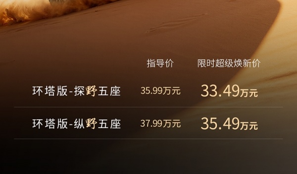 近日,捷途纵横G700环塔版上市,共推出2款车型,售价区间为35.99-37.99万,限时超级焕新价33.49-35.49万。