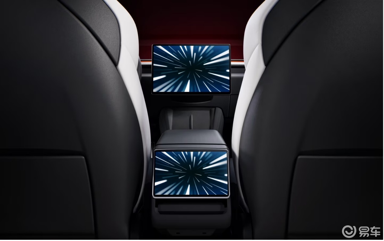 在新款Model 3的后排,可以找到一个8英寸的控制屏幕,可以控制后排座椅加热、空调调节,也可以播放音乐和视频,当然这个屏幕尺寸并不大,位置也不太好,当作娱乐屏使用也是不太合适的。