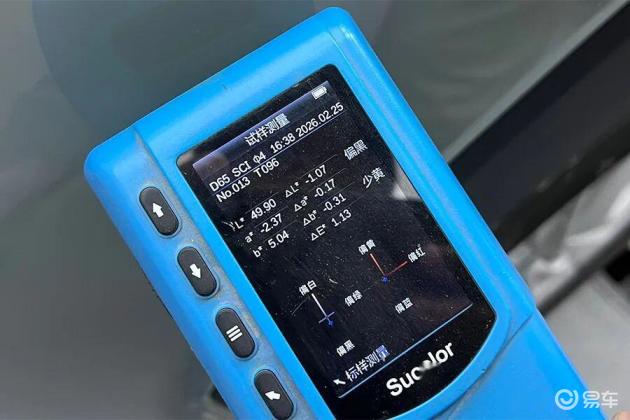 经过测试,最大色差值位于前保险杠处,色差值为1.13ΔE,比基准点偏黑少黄。从数值上来看,这辆车的喷漆工艺质量控制,还能说得过去。