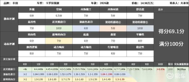 2026款丰田卡罗拉锐放试驾评分