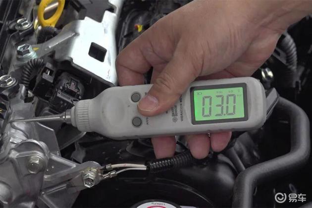 测试方法:水温正常后,关掉空调,在怠速状态下,使用测振仪垂直曲轴方向,将探针接触发动机金属机体中间的最高位置,测量发动机振动加速度值,数值越低,表明振动越小。