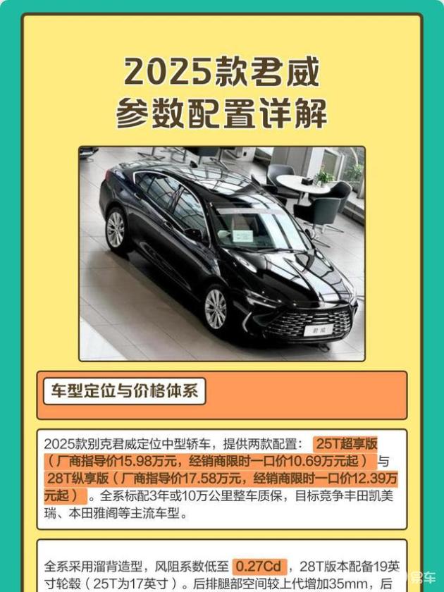 总结与购买建议综合来看,别克君威是一台优缺点都非常鲜明的车型。它将B级车尺寸、合资品牌身份和10万元价格三者罕见地结合在一起,创造了独特的市场定位。但这份“高性价比”并非没有代价,它体现在相对较高的市区油耗、部分配置的调整以及不那么前卫的智能化体验上。